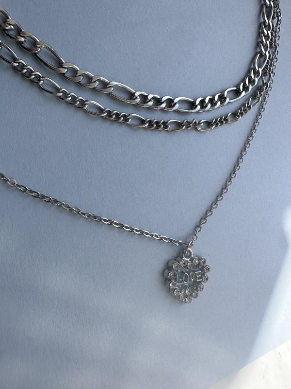 Состав: бижутерный сплав Длина самой короткой цепочки 45.5, второй 49, третьей с сердечком 51см плюс цепочка для увеличения длины 6.5см Все цепочки соединены вместе Смотрите также другие мои объявления, ещё много всего интересного и красивого ❤️