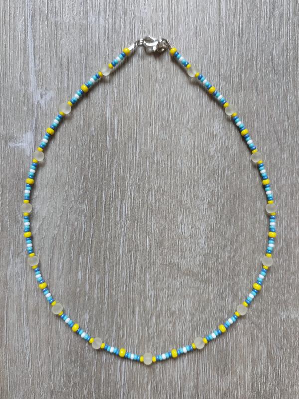 Продам жизнерадостный, солнечный чокер из матовых бусин муранского стекла и чешского бисера. Длина чокера - 39 см, нанизан на ювелирный тросик, застежка - карабин. Рамер стеклянных бусин - 4 мм. При необходимости могу поставить удлинительную цепочку или увеличить размер самого украшения. По всем интересующим вопросам пишите в личные сообщения - отвечу.