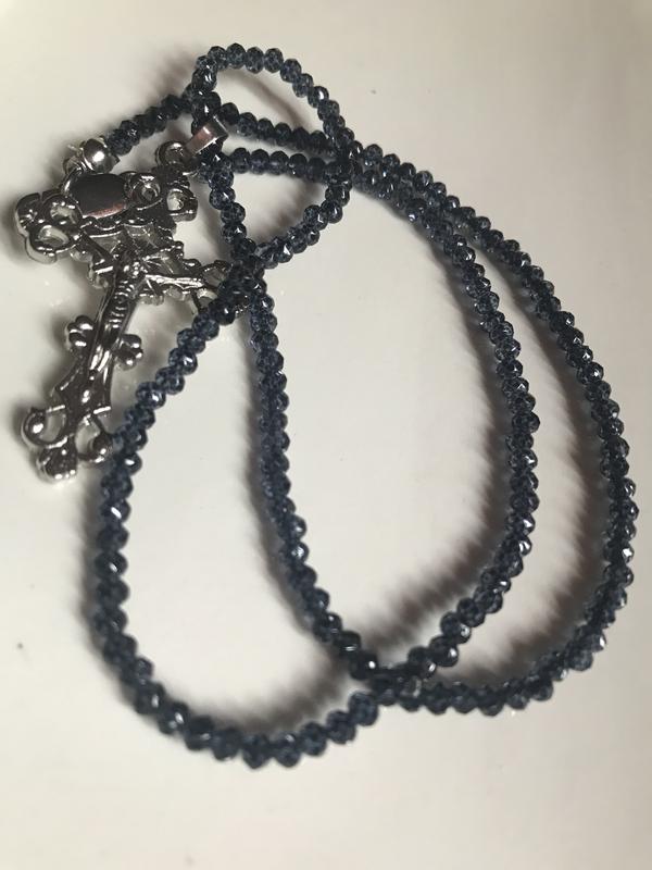 Синее хрустальное ожерелье с кулоном крест