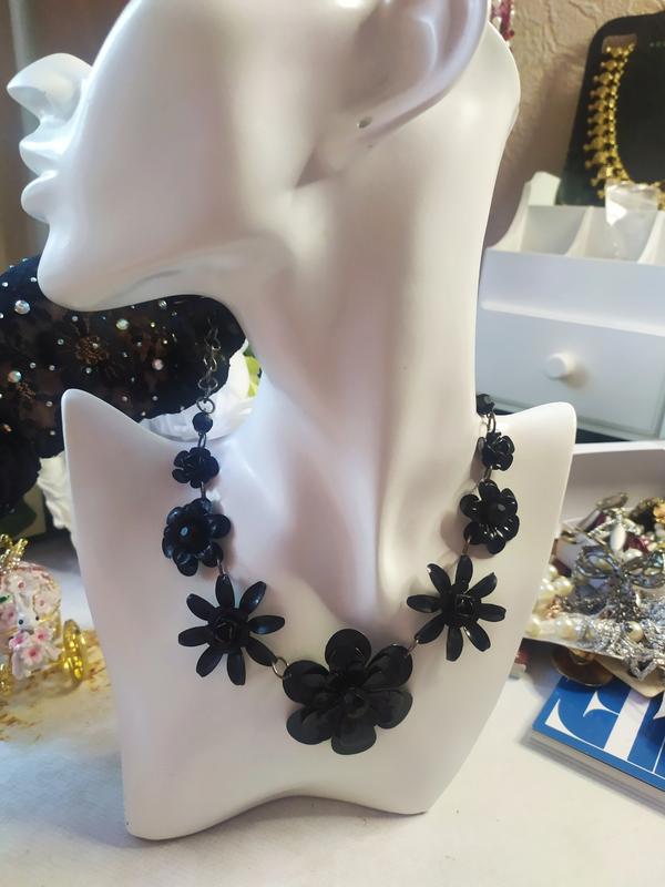 Колье черные цветы