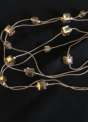 Красивое ожерелье в два ряда. Кристалки стеклянные с эффектом АБ. Длина по нижней низу 95 см.