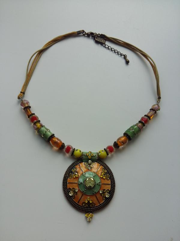 Сочное, яркое колье NEXT из разноцветных бусин, страз и металлической подвески с глазурью. Длина регулируется.