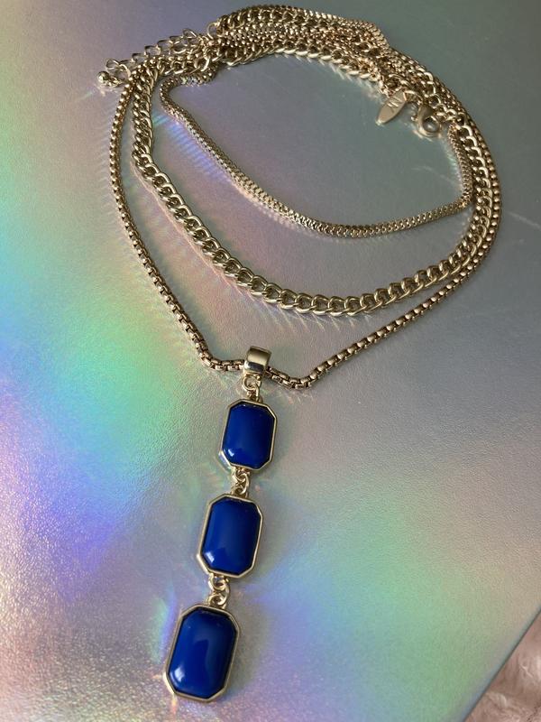 Трехрядное колье из цепочек в золотом тоне с подвеской из далеких 80х 🇺🇸 маркировано NY