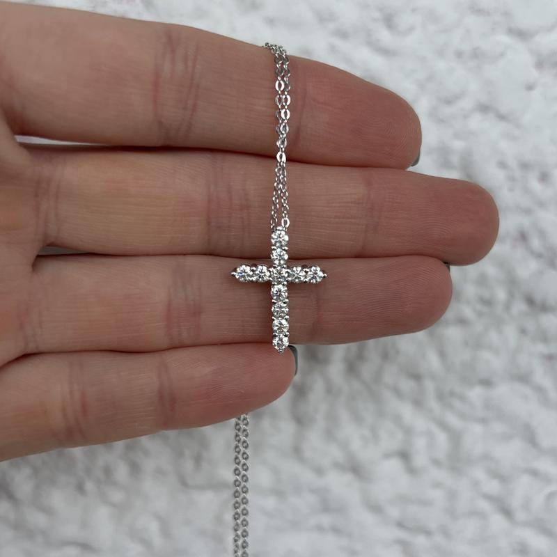Серебряная цепочка с крестиком в стиле Тиффани ******* T&Co инкрустированная камнями «бриллиантами» муассанитами, муассанит синтетический бриллиант ( муссанит, мусанит, ********** мусонит, муссонит) Муассанит это "конкурент" природных бриллиантов, поскольку муасанит является самым ярким камнем в мире, не уступает так же по плотности бриллианту ! Материал : серебро 926 пробы, покрытое родием (по виду, как белое золото) Окружность цепочки : 40+5 см В наличии два размера : Диаметр камней : 2,5 мм - 11 камней Размер крестика : 14,8 х 20мм Вес изделия : 3,5г Стоимость 1800 грн. Диаметр камней : 3 мм - 11 камней Стоимость 2000 грн. Характерный бриллиантовый блеск, положительный диамант тест. Цвет камней : D(белый) Четкость камней : v v s 1 Форма : круглый бриллиант Огранки : отлично Полировка : отлично Симметрия : идеально Маркировка : без бирки Пишите номер Вайбер или телеграм Отправлю видео