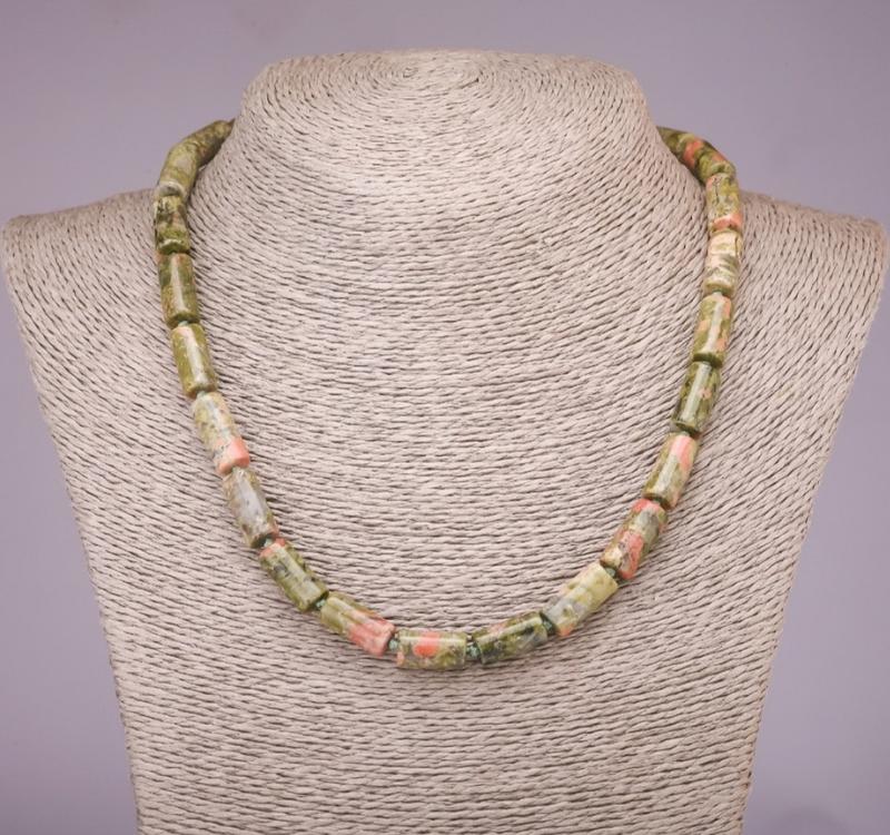 Ожерелье из натурального камня Гелиотроп Унакит цилиндр d-8х17мм L-45см