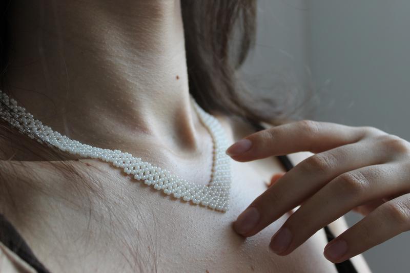 Намисто з бісеру, виконане в техніці силяння; бісер перламутрового кольору