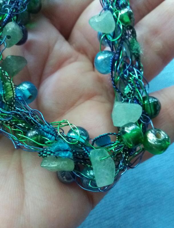 Винтажное ожерелье (многослойное плетение) состоящее из нейлоновых струн, акриловых нитей, текстильных жгутов, стеклянных бусин и натуральных камней. Маркировка: котик. Замеры на фото.