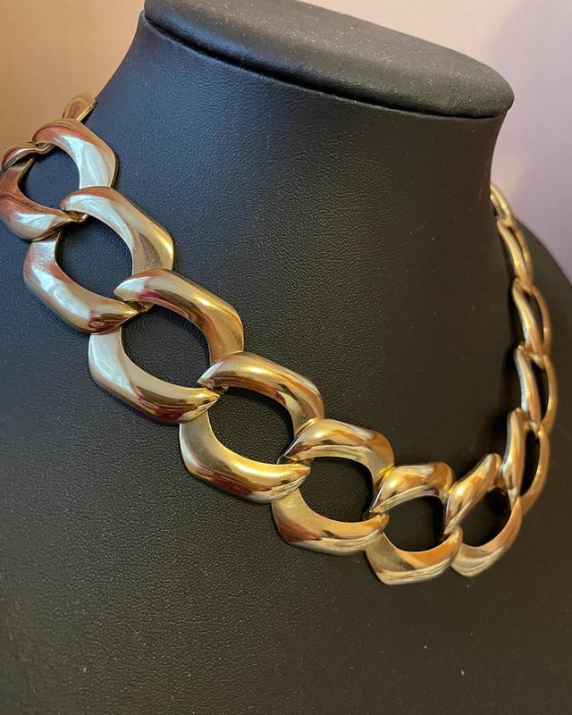 Стильное крупное колье-цепочка, золотистое глянцевое. Легкое. Длина: 48 см Ширина: 2.8 см