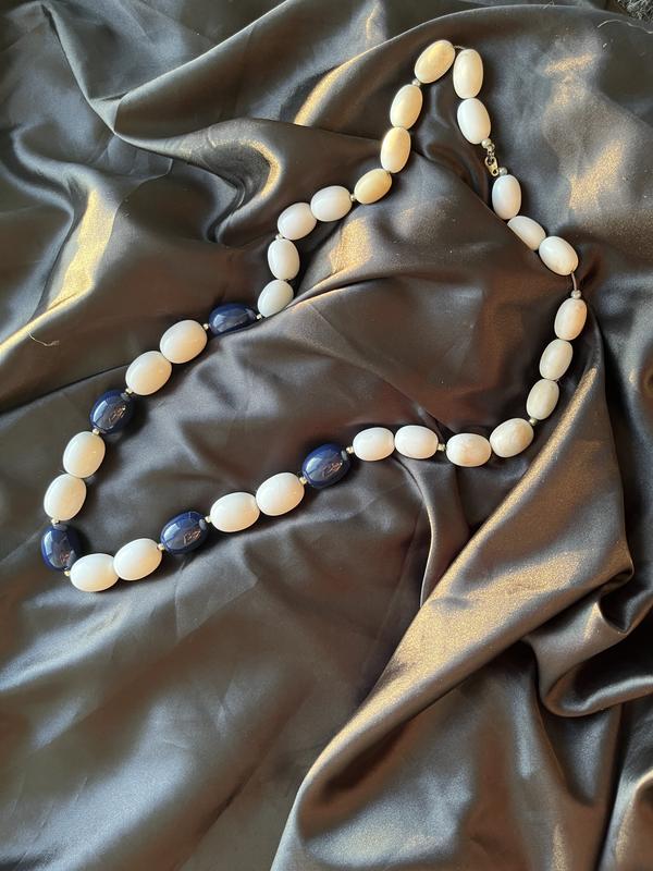 Белые с синим бусины , покрыты глазурью, которая со временем потрескалась и выглядит как ожерелье из камней. Винтаж с Америки привезен 🩵Цена: 150 грн