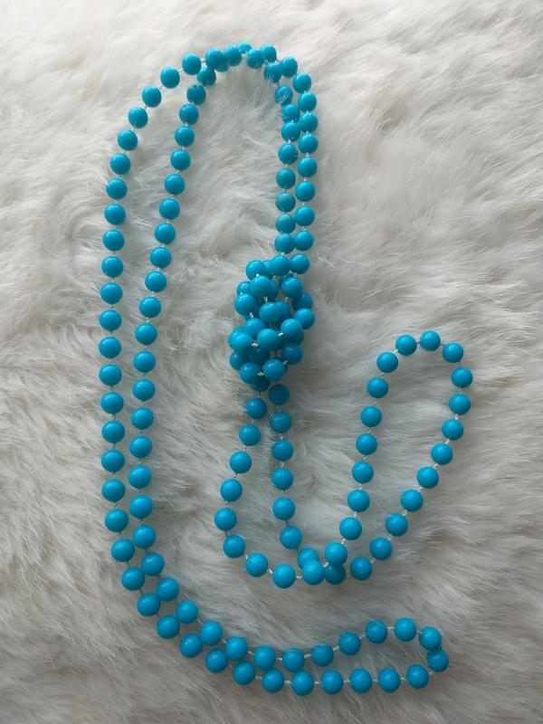 Длина 60 см. Диаметра одной бусины 0.5 см.