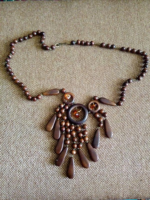 Колье, дерево, отсутствуют 3 бусинки.