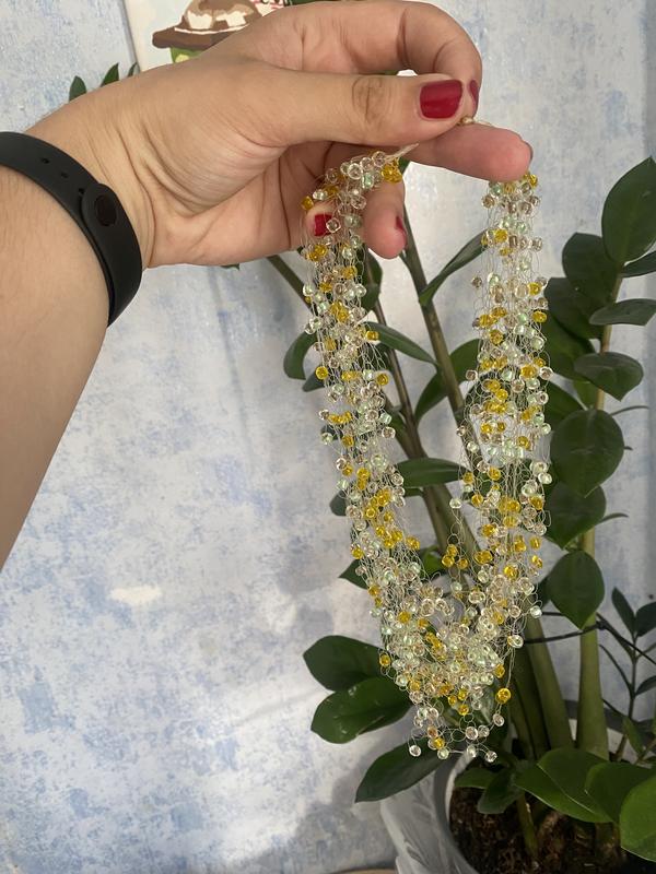 Стильное и очень красивое колье Паутинка) Сплетена тремя цветами:бирюзовый, желтый и серебряный) На жилочке!