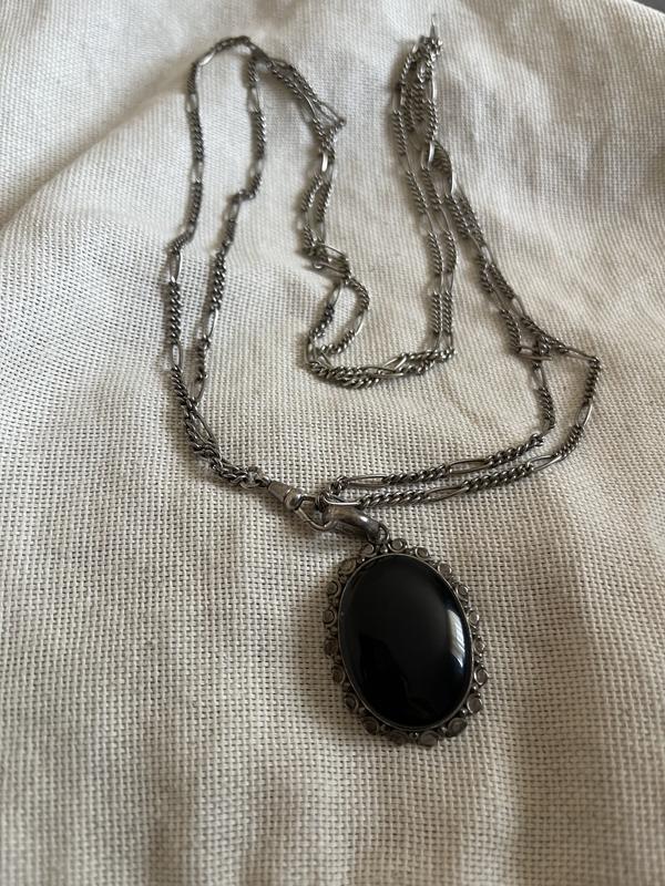 Серебряное антикварное колье Цепь клеймо 800 или 900 проба ( плохо видна первой цифре ) Кулон 925 проба Вставка камень