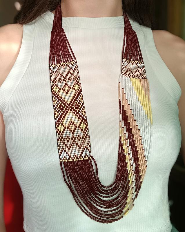 Гердан з бісеру ручної роботи, виконую з чеського бісеру технікою станочного ткацтва. Довжина 36см.