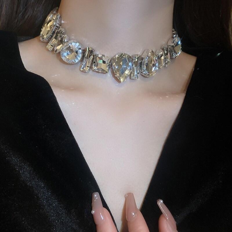Сріблясте намисто з великими геаметрічними камінцями білого кольору