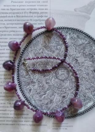 Тренд чокер, кольє, підвіска, буси, намисто, коралі, натуральний камінь (гранат), епоксидн...