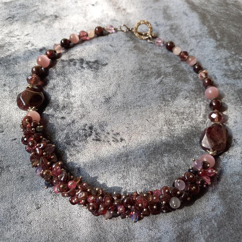 Гранат, бусины имитируя "кошачий глаз", хрусталь. Длина 48 см. Есть возможность немного увеличить или уменьшить длину. Каждое украшение будет надежно упаковано в бархатистый мешочек и красивую коробку, которую можно использовать как подарочную