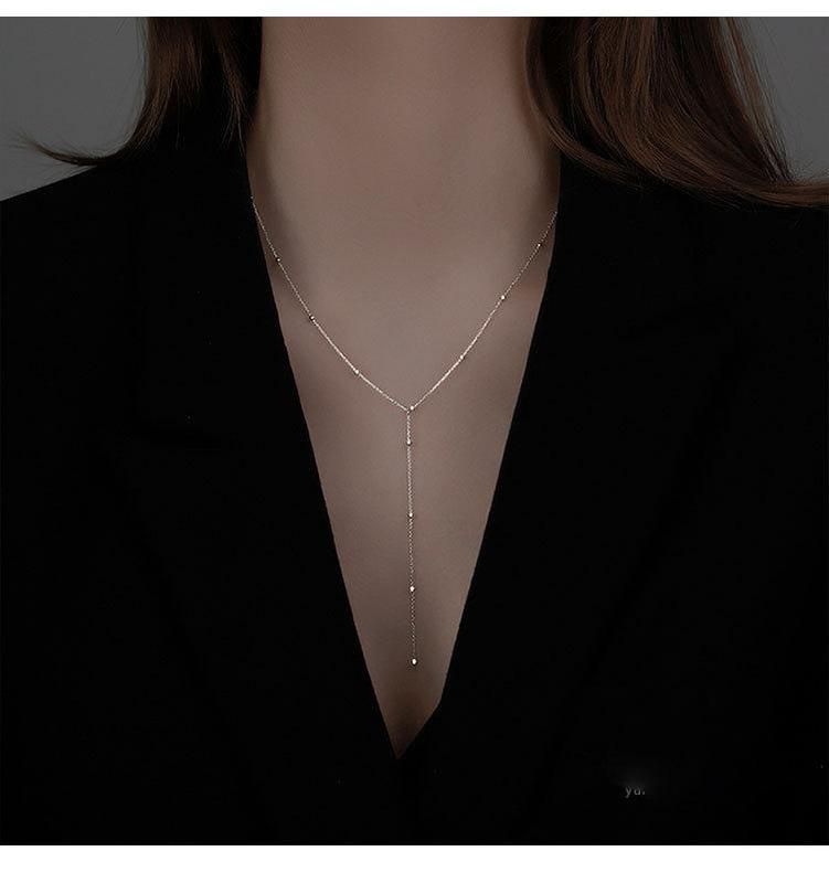 Колье 925 лариат (y-форма) с шариками | цепочка-галстук "росинки" | удлиняет шею | длина 8...