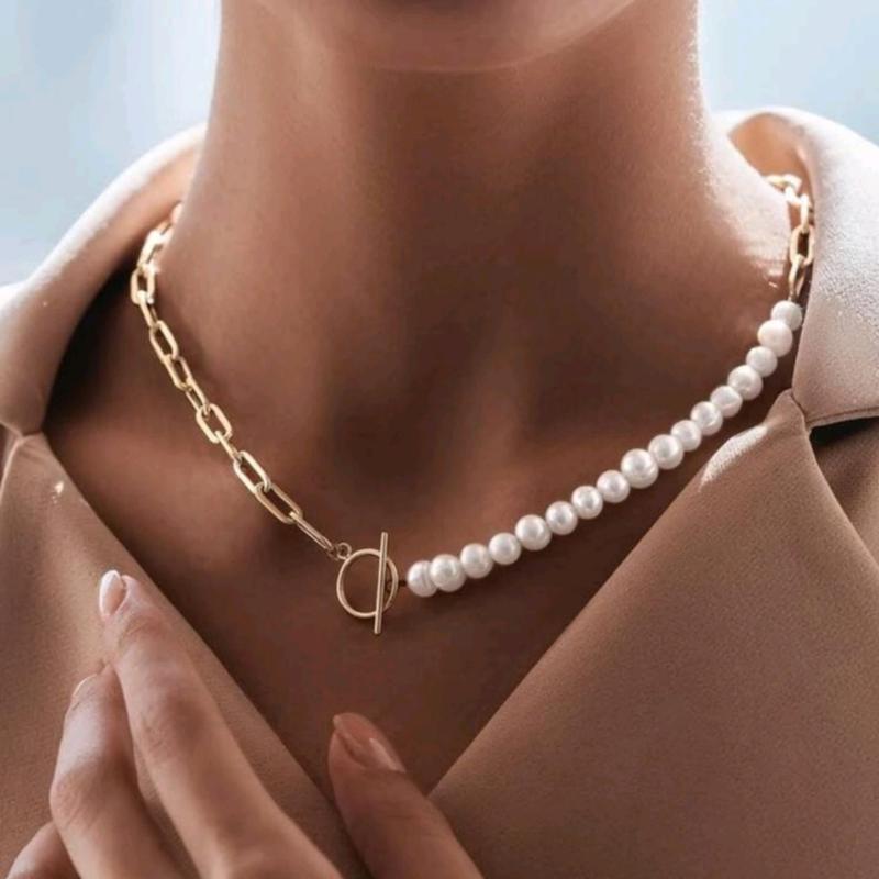 Красивое стильное колье имитация жемчуга