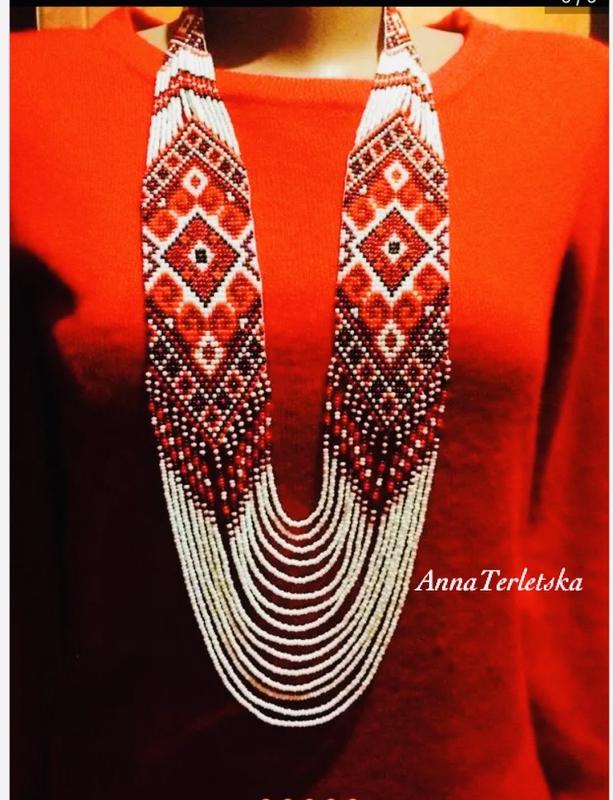 Гердан изготовлен из чешского бисера и прочной нити. Длина изделия сложенного пополам50см, ширина полосок 4,5 см. На заказ 5 дней.