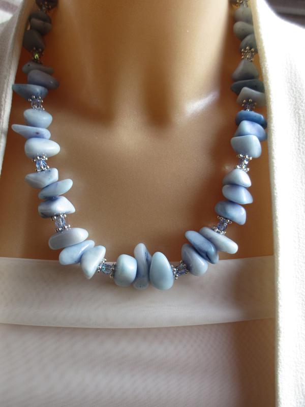 Очень красивое колье из натурального кварцита, тонированного под аквамарин. Камни крупные, отлично отшлифованы и очень приятные наощупь. Добавлены винтажные чешские бусины АВ василькового цвета. Фурнитура под серебро. Производит впечатление свежести. Длина 52 см. Вес 115 г. Возврат не предусмотрен. Наличие уточняйте предварительно. Не забудьте просмотреть "Все товары продавца" и найдете еще много интересного.