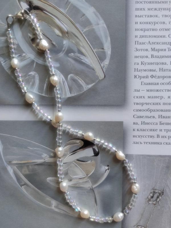 Продам нежный, утонченный чокер-колье из чешского бисера с радужным эффектом, бусин натурального речного жемчуга т посеребренных бусинок. Выполнен в единственном экземляре. На солнце и под искусственным освещением переливается всеми цветами радуги. Нанизан на ювелирный тросик, застежка - карабин. Длина - 39 см, можно увеличить размер с помощью удлинительной цепочки или изменить размер самого украшения по Вашей просьбе. По всем интересующим вопросам пишите - отвечу.