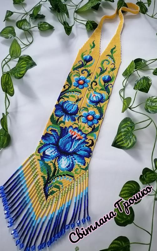 Гердан петриківський розпис Блакитні квіти. З бісеру. Ручна робота. НАЯВНІСТЬ УТОЧНЮЙТЕ. Роблю на замовлення різних кольорів.