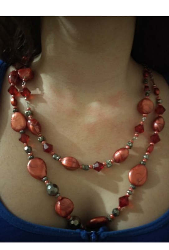 Качественная бижутерия. Оригинальное модное колье кораллового цвета, длинное. Красивый и стильный аксессуар – необходимый элемент модного образа, а также маленькая возможность порадовать себя любимому. Это заметно колье просто находка для ярких и непредсказуемых личностей, которые любят находиться в центре внимания.