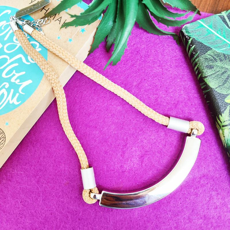 Современное НОВЫЙ колье американсього бренда ALFANI. Это - американский бренд мужской, женской одежды и аксессуаров, в том числе бижутерии. Торговая марка была основана в 1986 году и принадлежит сети Macy's. Данное украшение выполнено в этническом стиле. Минималистичный дизайн, лаконичная форма. Центральный дуговидный элемент выполнен из полированного серебристого сплава. Он зафиктирован на тестильном жгуте. Застежка - карабин. Колье промаркировано. Длина - 49 см + 5 см удлинителя. "Редная" цена - 44.5$. Добавлен видеообзор.