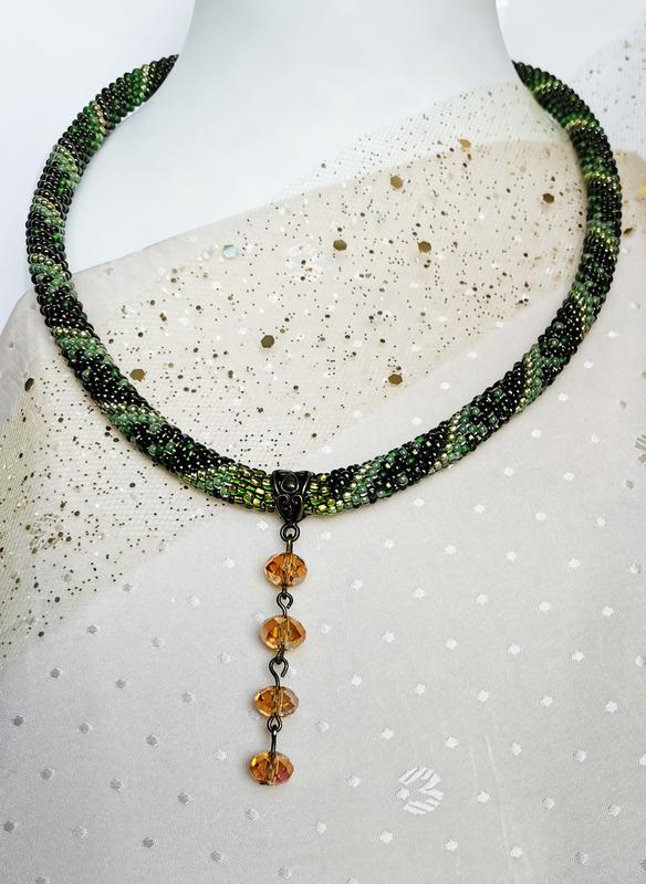 Жгут-колье, связанный из чешского бисера. Нежность в сочетании с уникальностью сделает Ваш образ привлекательным и стильным. Порадуйте себя или близких замечательным подарком. Длина с застежкой ок.43см.