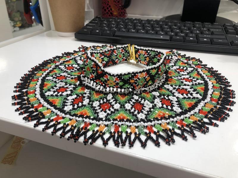 Силянка изготовлена из чешского бисера. Вес приблизительно 200 грамм. Очень красиво ложится на плечи