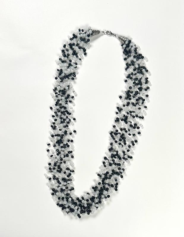 Колье из крупного бисера белого и черного цвета. Длина 70 см