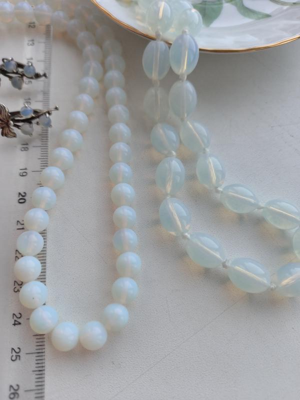 Вещи, которые могли бы быть частью комплектов. Ожерелье из (имитации лунного камня) опалитового стекла с более крупными овальными бусинами-295, с круглыми меньшими за размером бусинами -295, брошка - 395 грн. Хорошее состояние. При покупке лотом - скидка. До заказа обязательно уточните наличие товара. Сережек нет. Кулона нет.