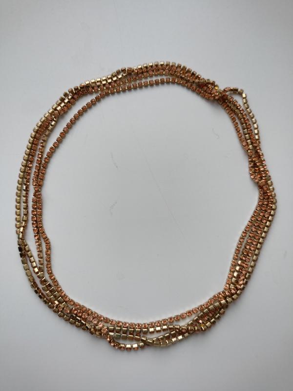 Колье из тонкой низки кристаллов персиково-розового цвета. Без замочка. Можно носить разными вариантами. Длина: 140 см