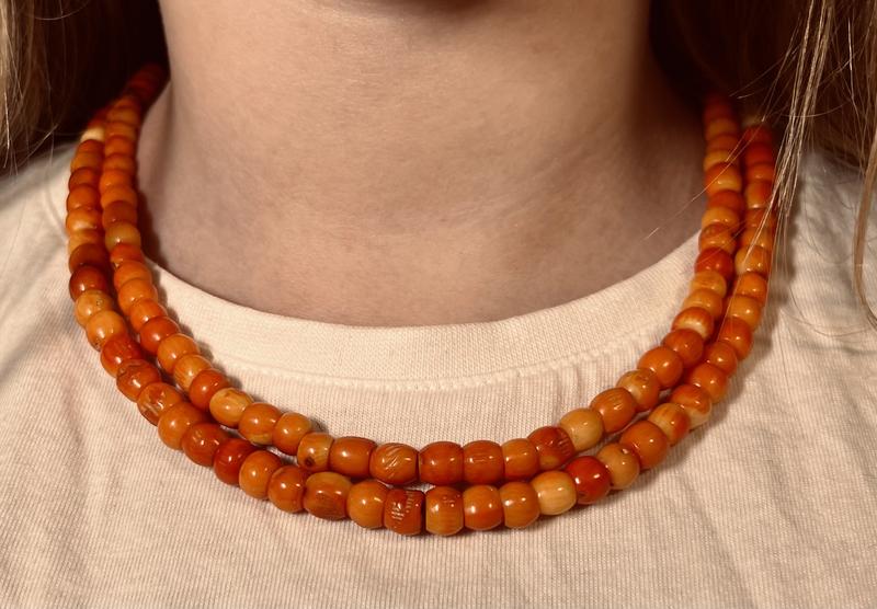 Коралове намисто, 42 сантиметра, в дві низки. Унісекс, можна носити як і жінкам, так і чоловікам. Можна носити під традиційний костюм, так і під звичайні речі. 15% від продажу намиста піде на потреби ЗСУ. Також можна замовити намита в мене.