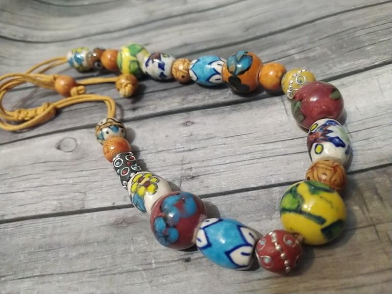 Ожерелье энтно керамика дерево на затяжке шамбала