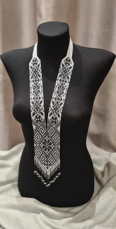 Гердан ручной работы в черно-прозрачных цветах из бисера preciosa украинская тематика укра...