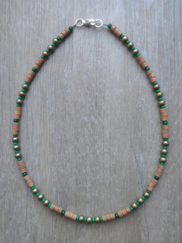Продам яркий, оригинальный чокер из бусин хризопраза, бронзовых и кокосовых бусин ручной работы, а также чешского бисера, унисекс. Чокер нанизан на ювелирный тросик, застежка - карабин. Размер бусин хризопраза - 4 мм, бронзовых бусин - 5 мм, бусин из кокоса - 4 мм сответственно. Длина чокера с застежкой - 40 см, можно добавить удлинительную цепочку по Вашей просьбе или изменить размер самого украшения. По всем интересующим вопросам пишите - отвечу.
