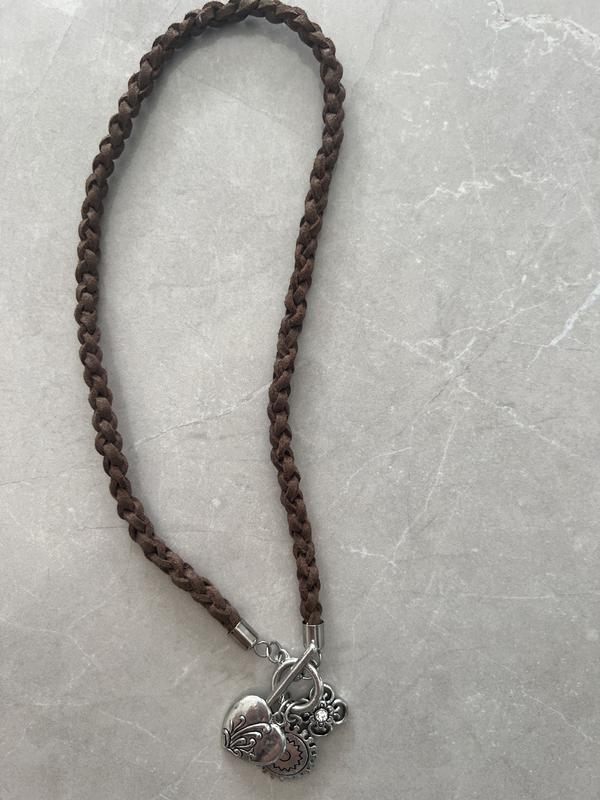 Шкіряний чокер спідвіскою lia sophia kiss & tell silver hearts toggle black chocker neckla...