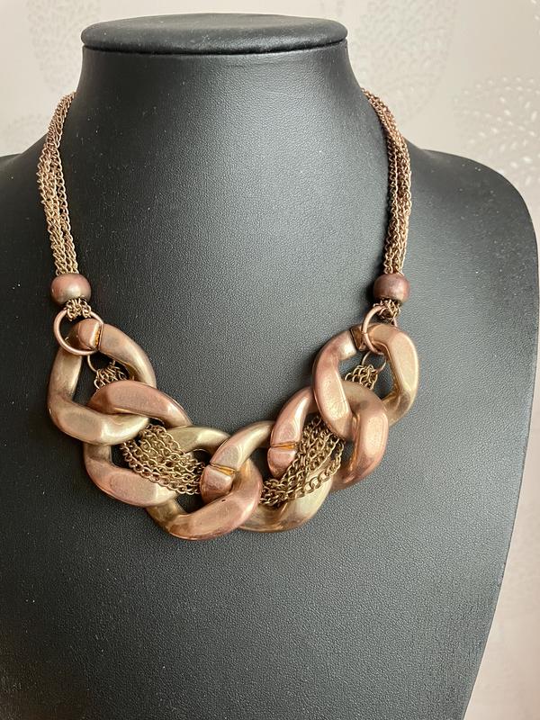 Стильне крупне кольє з мідним покриттям, легке. Дуже хороший вінтажний стан. Довжина-50 см