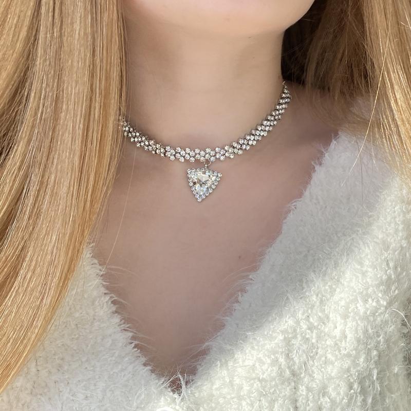 Сияющее серебристое колье на шею с стразами