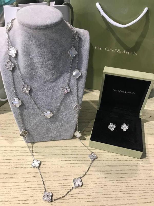Набор vancleef/ ванклиф с посеребрением: подвеска 20 клеверов и серьги