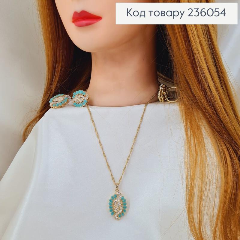Набір підвіска на шию, сережки та колечко в камінцях в асорт