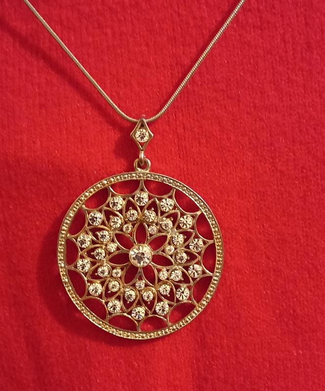 Неймовірне колье. Підвіс- сяюче сонце, як на мене. Кристали дуже гарні, якість чудова, сяють красиво. Довжина - 40 см. Єподовжувач. Розмір підвіски- 5*5 см. Стан дуже хороший. Є незначні потертості із внутрішньої сторони ( в ціні враховано). Американський вінтаж.
