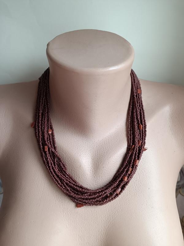 Бусы из бисера, бусы к вышиванке, бусы коричневые, бусы из бисера и камни