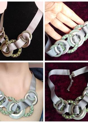 Продам колье на ленте, фирмы Next. Лента серого цвета с металлическими кольцами приглашенного зелёного цвета. Длина изделия 42, с цепочкой 50 см. Смотрится очень оригинально. Дополнительная информация в личку. Пересылаю по предоплате или через безопасную сделку. Смотрите другие мои объявления.