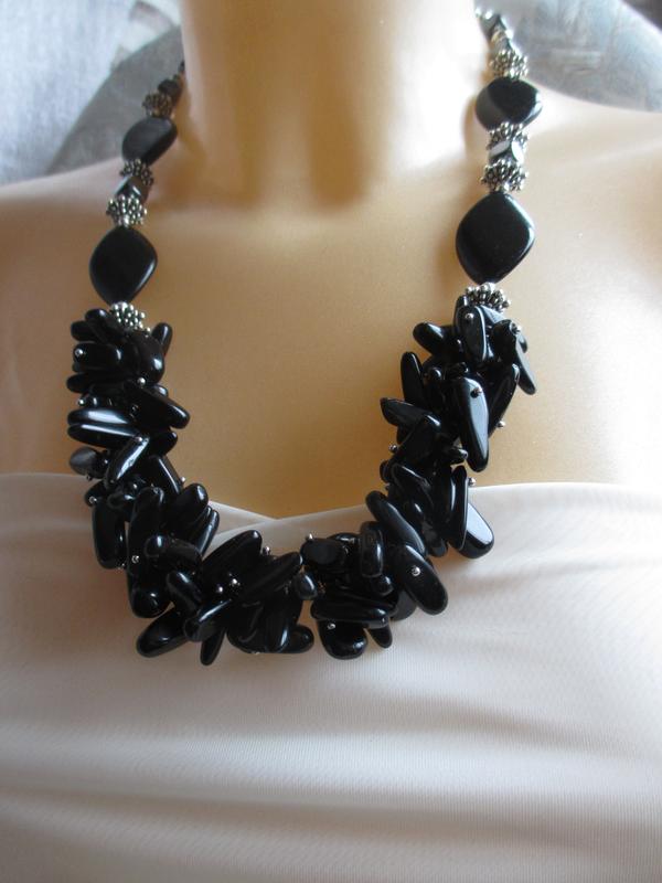 Крупное пышное колье в черно-серебристых тонах из агата и гематита. Фурнитура цвета серебра. Смотрится очень солидно. Длина 58 см. Возврат не предусмотрен. Наличие уточняйте предварительно. Не забудьте просмотреть "Все товары продавца" и найдете еще много интересного.