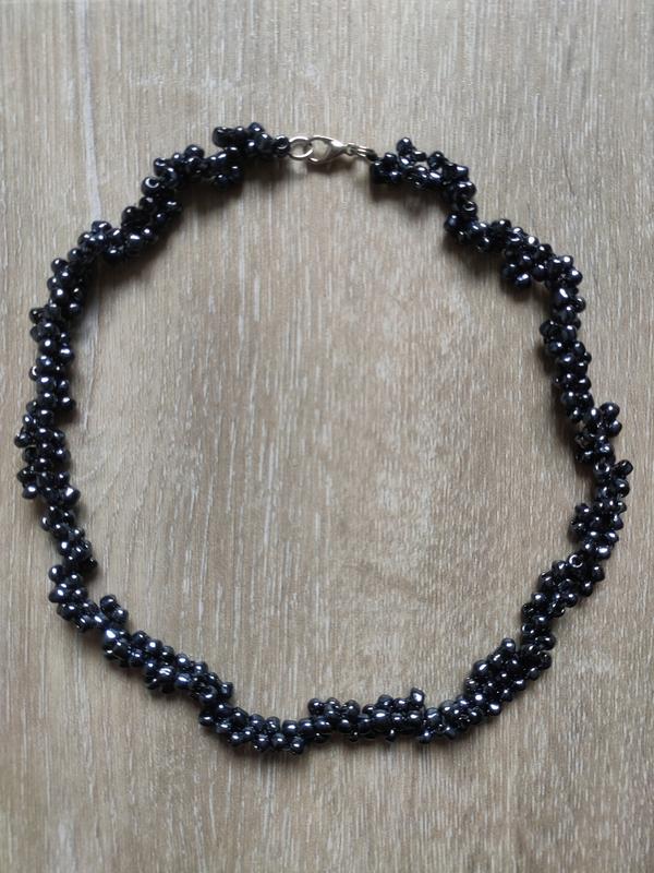 Тренд чокер, колье, ожерелье, подвеска, бусы, намисто, коралі, жгут чешский бисер гематито...