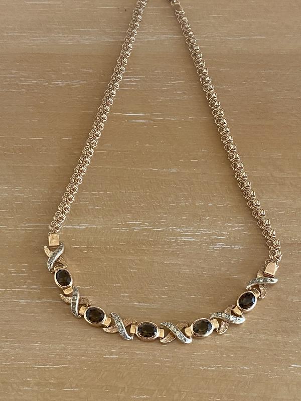 Вес 28.59. Длина 47 см. Камни раух-топазы, цирконии
