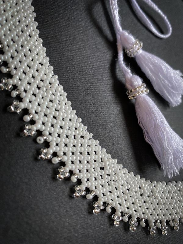 Силянка «Біленька» з білого перламутру та срібними елементами Додасть ніжності та вишуканості вашому стилю. А китички з деталями підтвердять ваш вишуканий смак Ширина прикраси 2см Зав’язки бавовняні handmade *гарне пакування в подарунок **дивіться також інші мої оголошення